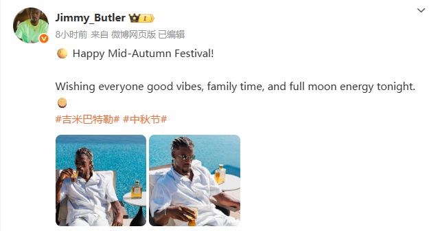 走心了!巴特勒社媒向中国球迷送上中秋祝福